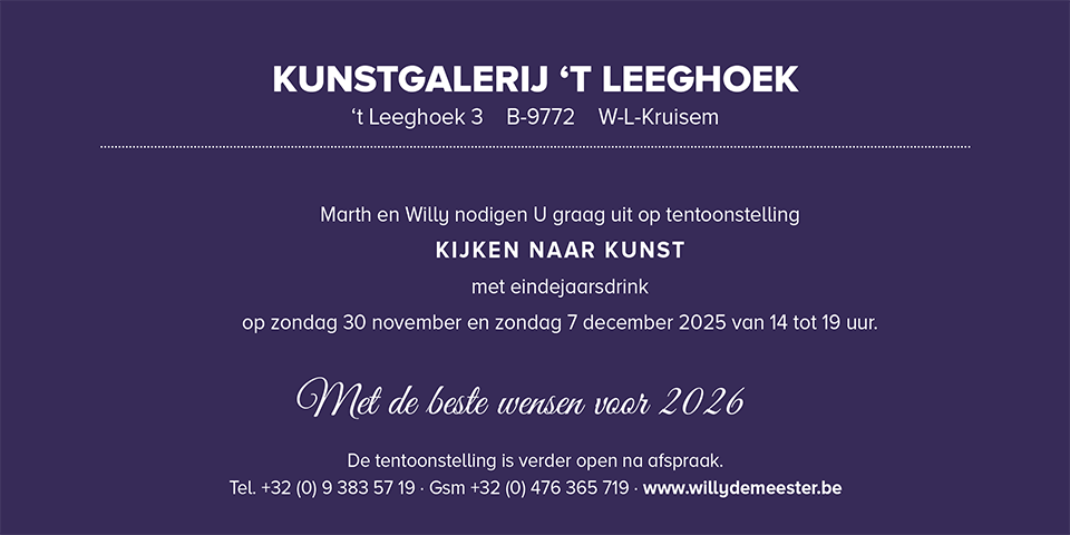 Op zaterdag en zondag van 14 tot 18u of na afspraak. |